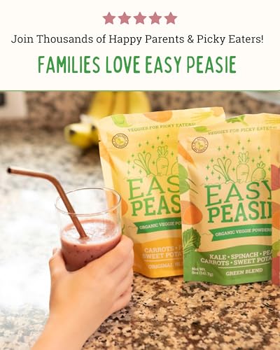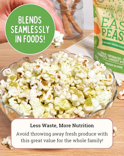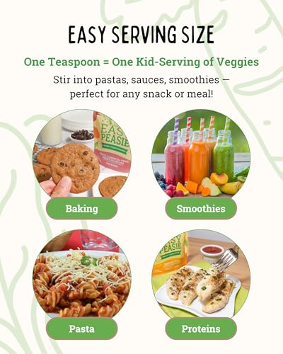 EASY TO USE AND NUTRITIOUS: Each teaspoon of Easy Peasie equals a kid-sized serving of vegetables, while two tablespoons equal a full cup for adults. Add to snacks, smoothies, and meals to make every bite more nutritious. It’s “easy peasy”!